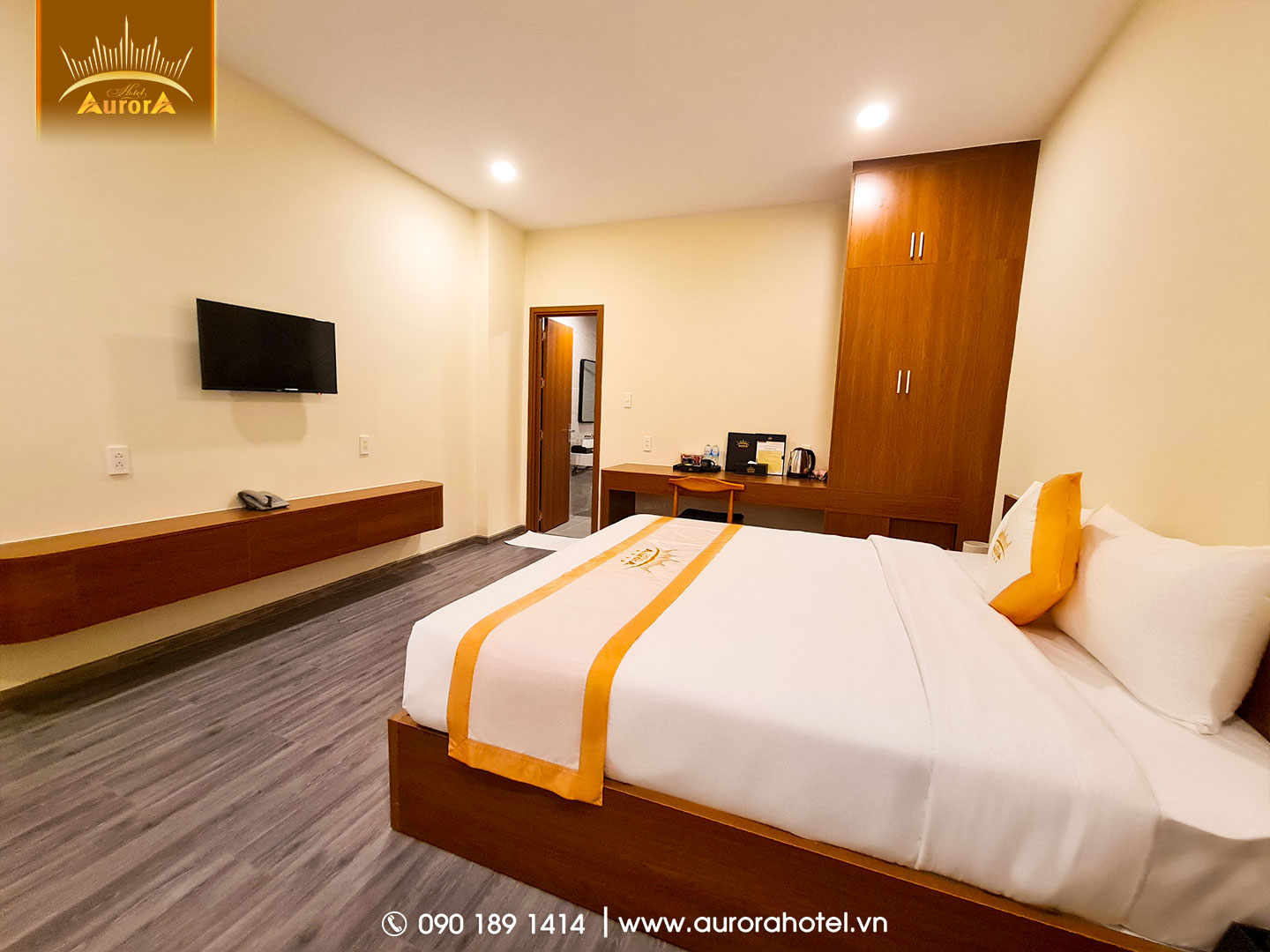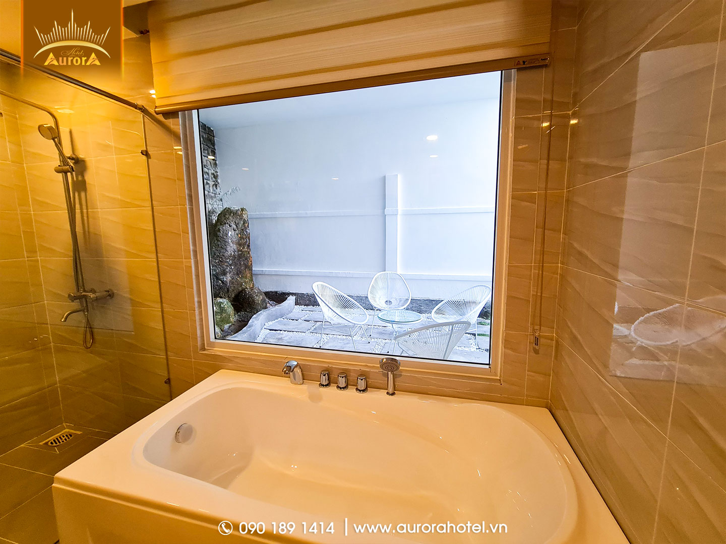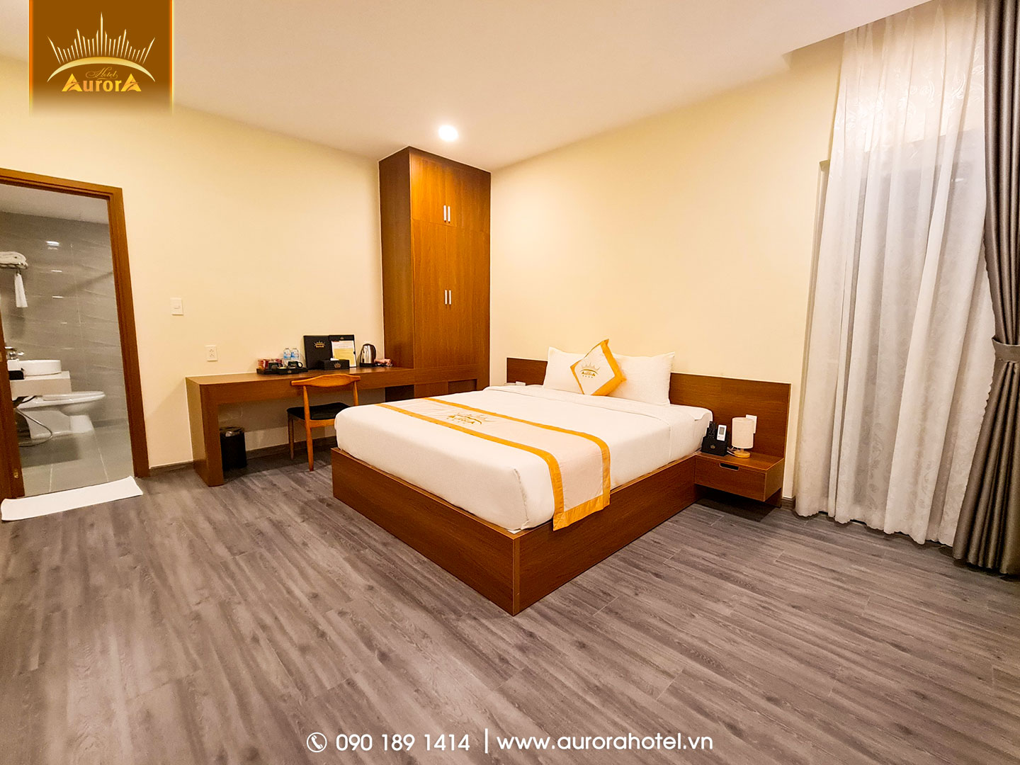 AURORA Phòng cao cấp sở hữu giường cỡ lớn không gian thoải mái với tầm nhìn ra khu vườn